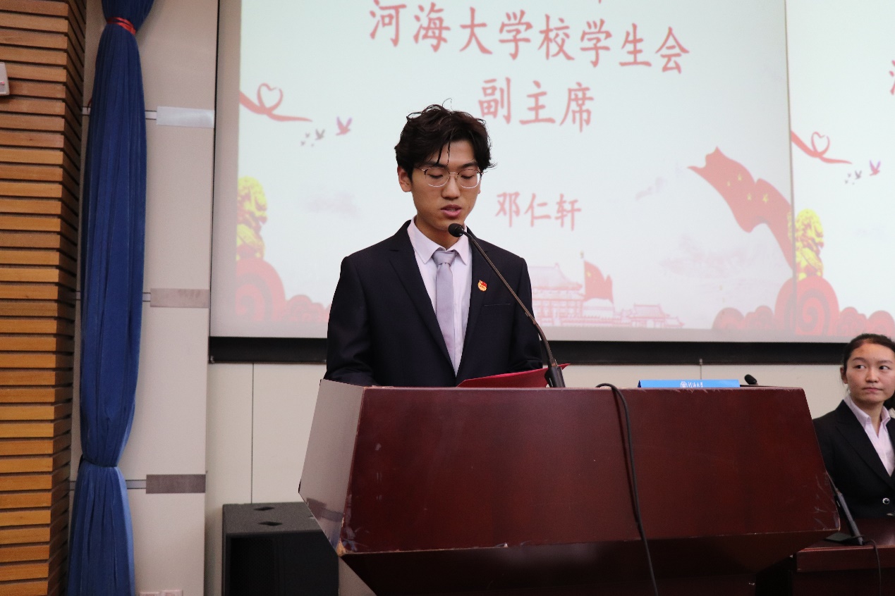 在接下来的学生代表致辞环节,校学生会常任代表邓仁轩同学和校学生科协副主席岳楠同学为开幕式致辞,他们回顾了成人电影 过去一年中在举办讲座、参加校运会以及其他工作中的优秀表现和取得的优异成绩,并引用习近平主席对青年一代的期盼,提出对第九届学生会和科协主席团的希望。